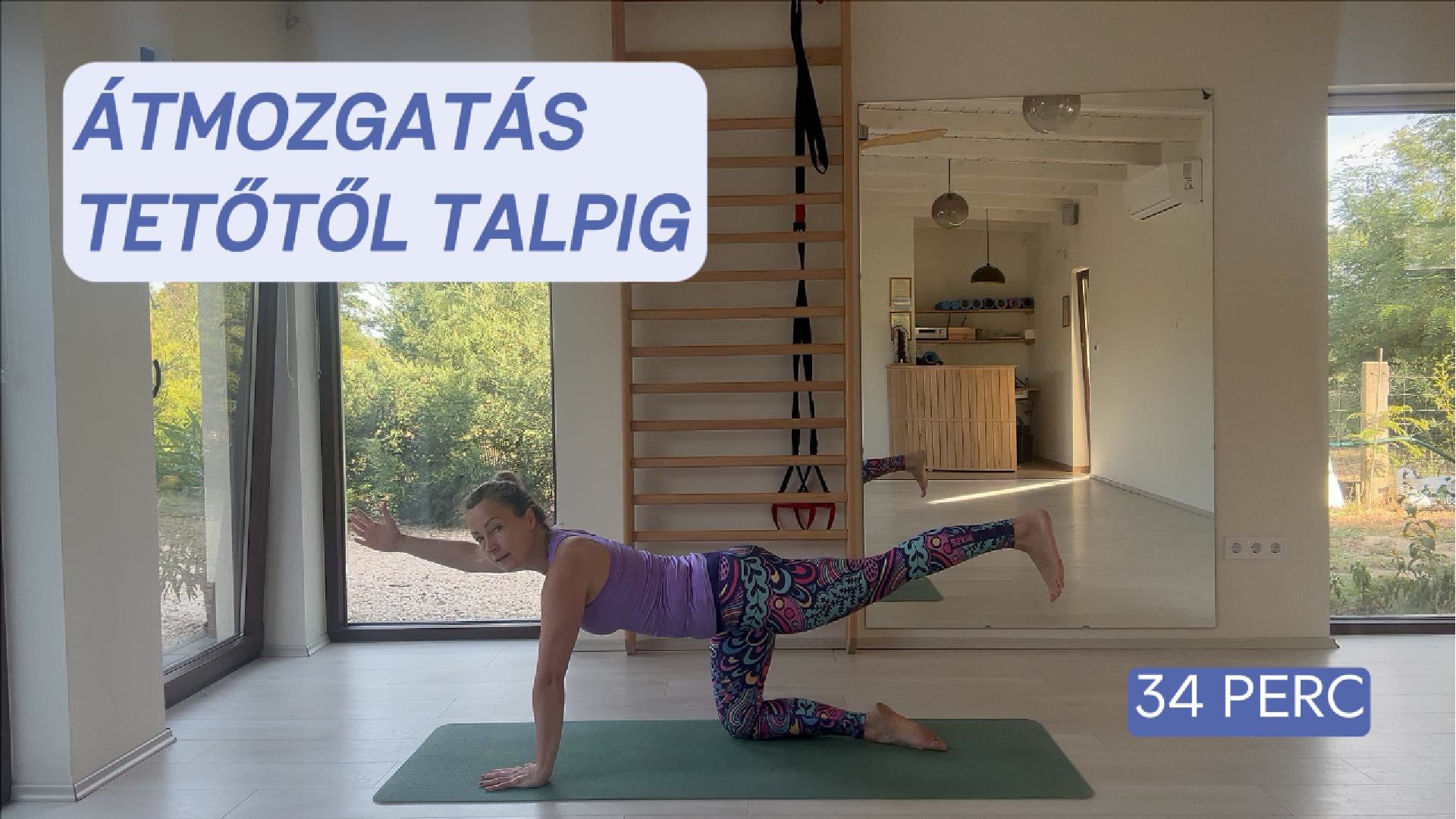 Ez a 34 perces gyakorlás a teljes test átmozgatására épül. Finom bemelegítő mozdulatok, nyújtások és átvezető gyakorlatok segítik a gerinc, a csípő, a váll és a lábak izmainak aktiválását, növelik a rugalmasságot, és harmonizálják a testet. Ideális választás, ha szeretnél energikus, frissítő és teljes körű átmozgatást végezni.