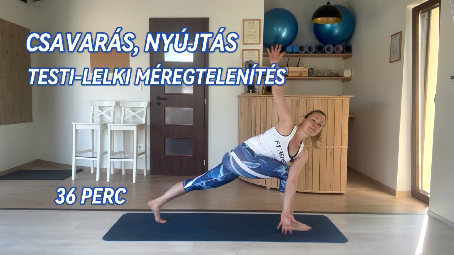Ez a 36 perces gyakorlás a csavarások és nyújtások kombinációjával segít a test és az elme méregtelenítésében. Tudatos légzés és tartott pózok támogatják a gerinc mobilitását, a csípő és vállöv lazítását, miközben oldják a feszültséget és harmonizálják az energiákat. Ideális választás, ha szeretnél könnyed, frissítő és energizáló gyakorlást végezni.