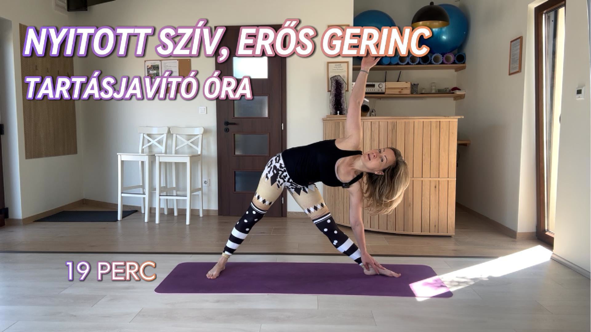 Ez a 19 perces gyakorlás a mellkas nyitására és a gerinc erősítésére fókuszál. Tartásjavító pózok és finom nyújtások segítik a hát, váll és törzs izmainak aktiválását, javítják a testtartást, és felszabadítják a légzést. Ideális választás, ha szeretnél rövid, de hatékony gyakorlással erősíteni, nyitni a szívet, és harmonizálni a testtartást.